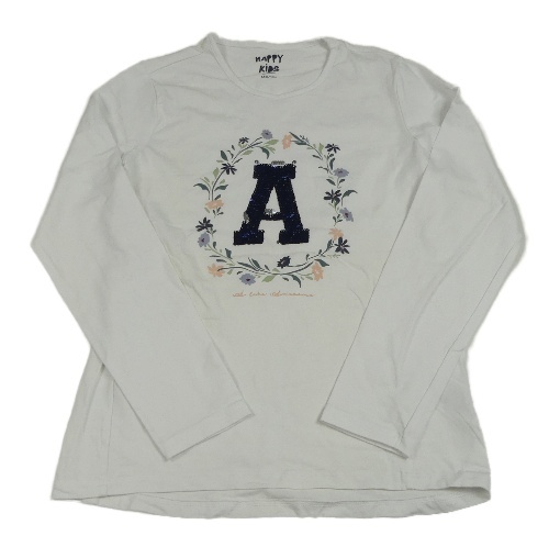 Biele tričko s písmenkem z překlápěcích flitrů a kvietkami Tchibo