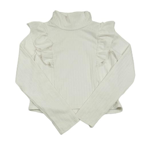 Biely rebrovaný crop rolák s volánikmi Shein