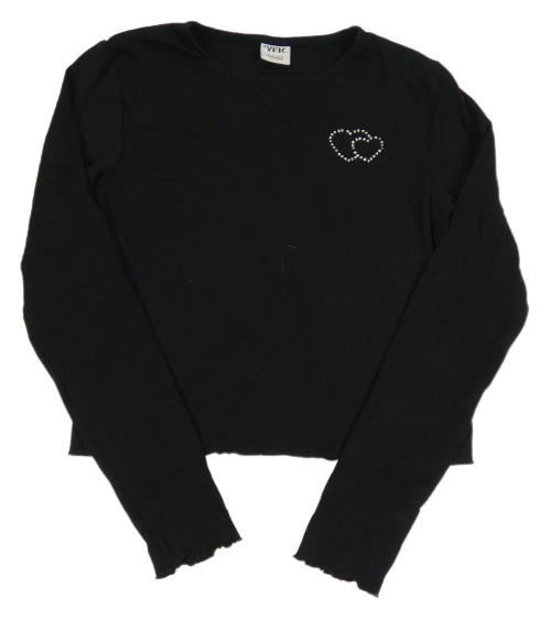 Čierne rebrované crop tričko so srdíčky z kamínků Y.F.K.