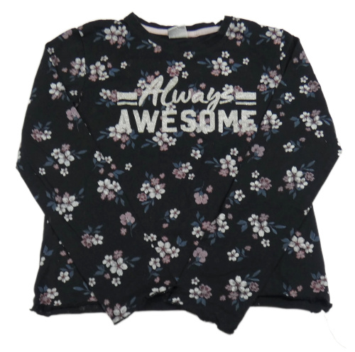 Čierne crop tričko s kvietkami a nápisom Y.F.K.
