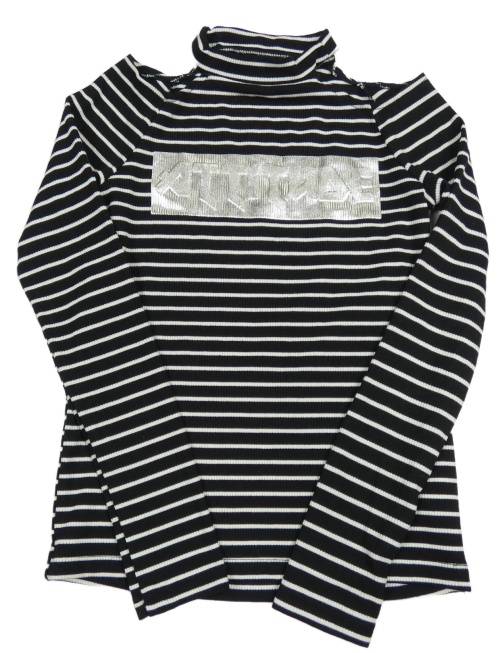 Čierno-biele rebrované tričko s rolákom a holými rameny Pep&Co