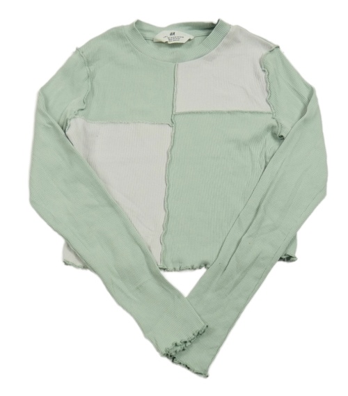 Světlezeleno-biele rebrované crop tričko H&M