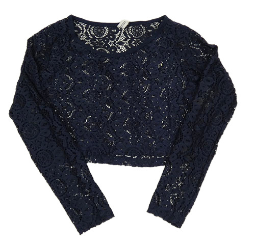 Tmavomodré kvetované čipkové crop tričko YIGGA
