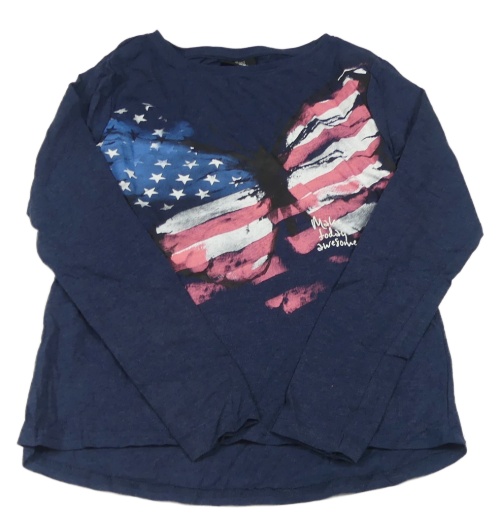 Tmavomodré melírované tričko s motýlkem/vlajkou Page one young
