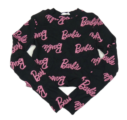 Čierne rebrované crop tričko s nápisy - Barbie H&M