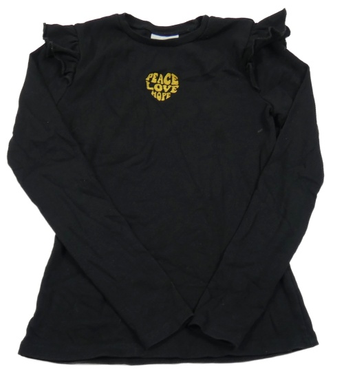 Čierne rebrované tričko so srdcem a volánikmi Matalan