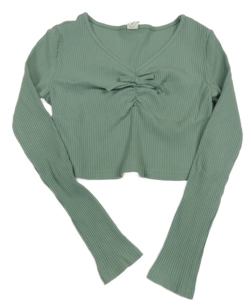 Khaki rebrované crop tričko Shein