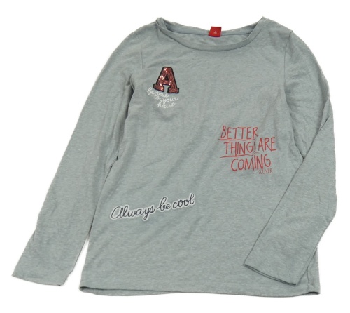 Sivé melírované tričko s nápisy a písmenkom s flitrami S. Oliver