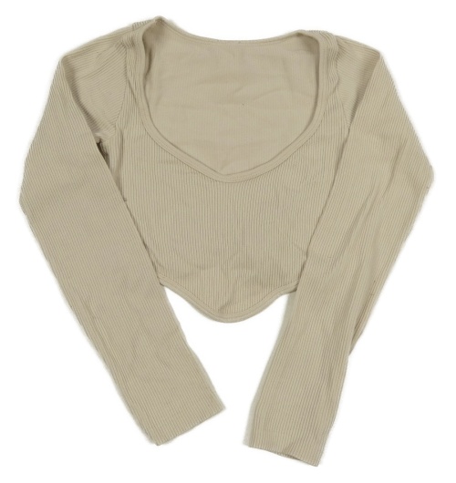 Béžové rebrované crop športové tričko
