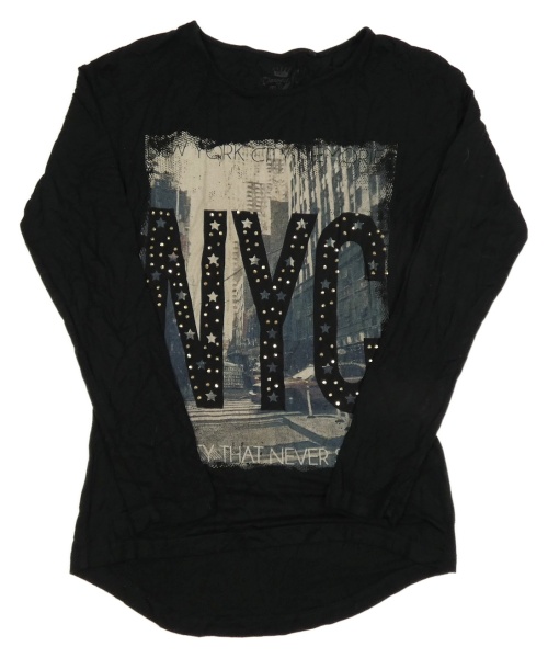 Čierne tričko s mrakodrapy a písmeny s kamienkami C&A