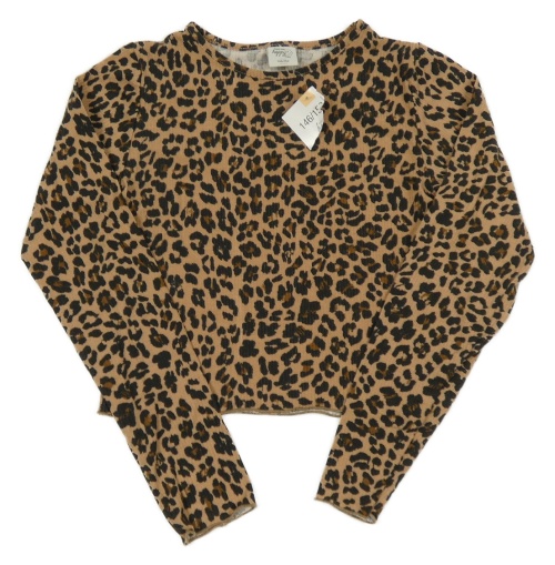 Nové - Béžovo-hnedo-čierne vzorované rebrované crop tričko