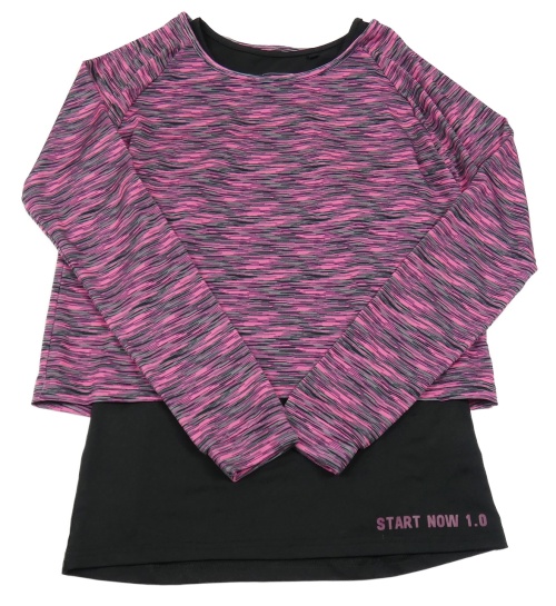 Neónově ružovo-čierno-sivé melírované športové crop tričko s všitým topem Ergeenomixx