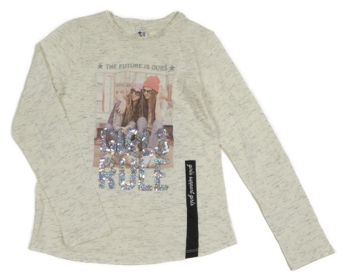 Bielo-sivé melírované tričko s dievčatkom a nápisy z flitrů C&A