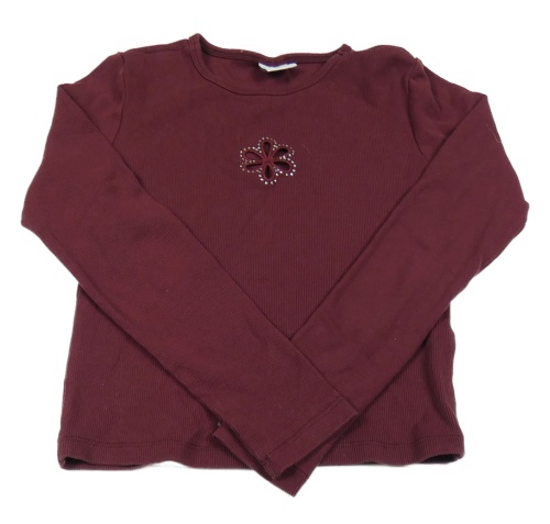 Mahagónovoé rebrované crop tričko s kvietkovaným prestrihom a kamienkami Page one young