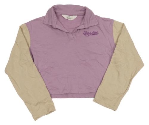 Lila-béžové crop tričko s nápisom a golierikom H&M