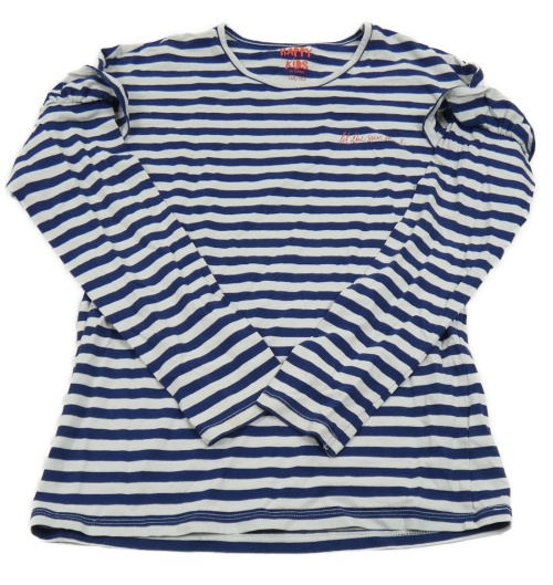 Tmavomodro-biele pruhované tričko s nápisom a volánikmi Tchibo