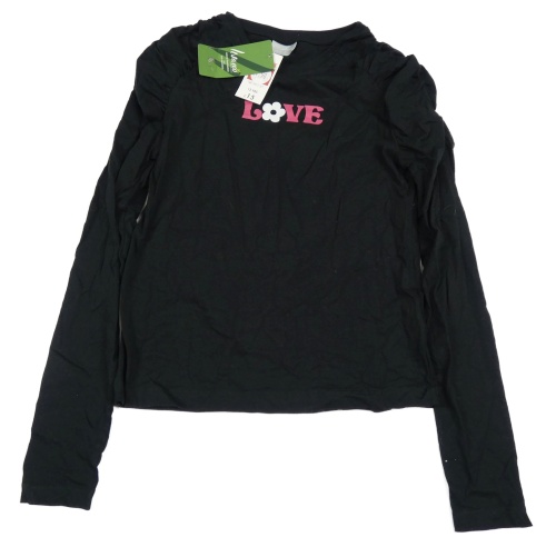 Nové - Čierne crop tričko s nápisom a řasenými rukávy Matalan