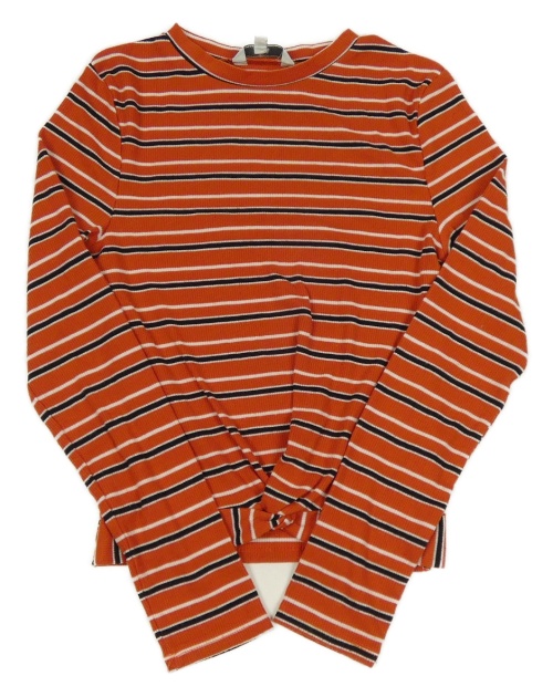 Rezavo-čierno-biele pruhované rebrované tričko s překřížením MISS E-VIE