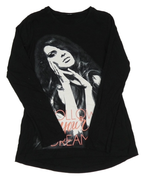Čierne tričko s dívkou a nápismi Y.F.K.