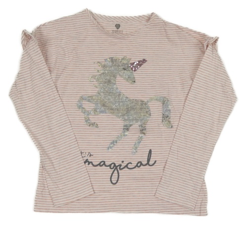 Ružovo-biele pruhované tričko s jednorožcom a volánikmi F&F