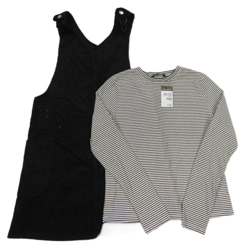 Nové - 2set - Čierno-biele pruhované rebrované triko + čierne menšestrové na traké šaty Primark