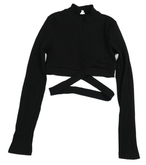 Čierne rebrované crop tričko s opaskom Shein