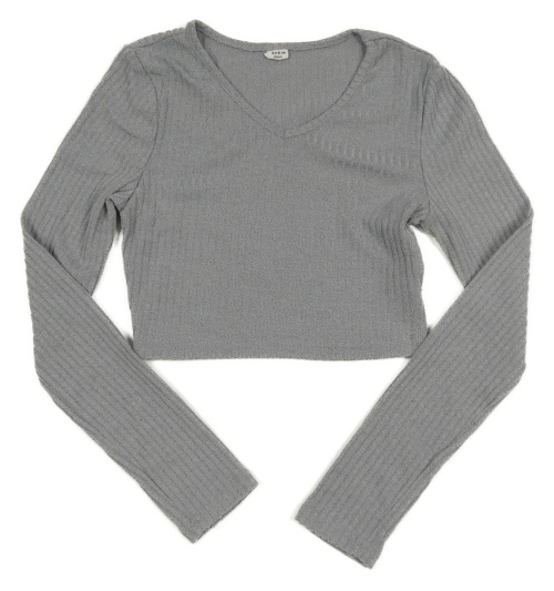Sivé rebrované úpletové crop tričko Shein