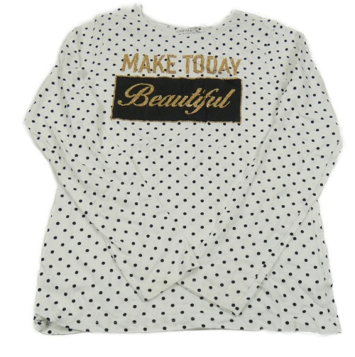 Bielo-čierne bodkovaná é tričko so zlatými nápisy PRIMARK