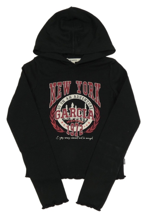 Čierne crop tričko s potlačou a kapucňou GARCIA