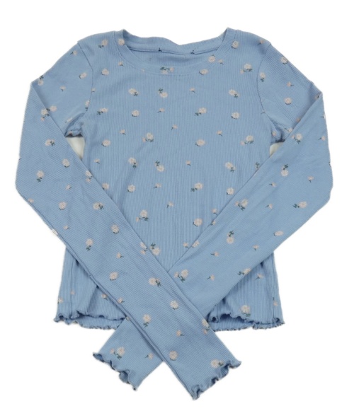 Svetlomodré rebrované crop tričko s kvítky