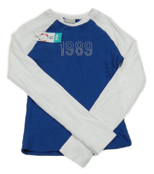 Nové - Tmavomodro-biele rebrované tričko s číslem z kamínků Matalan