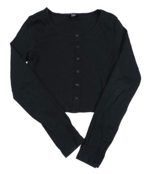Čierne rebrované crop tričko s gombíkmi New Look