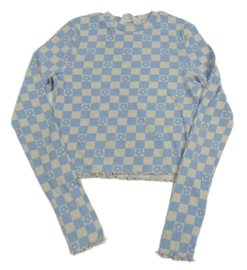 Světlemodro-smotanové kockované rebrované crop tričko s kvetmi H&M