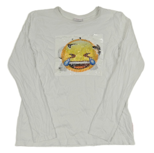 Biele tričko s obrázkem z překlápěcích flitrů Emoji