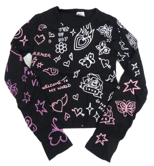 Čierne rebrované crop tričko s obrázkami ZARA