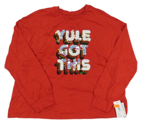 Nové - Červené tričko s nápisem z překlápěcích flitrů Dunnes