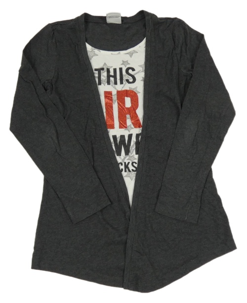 Tmavosivý cardigan s všitým topem a nápisom Yigga