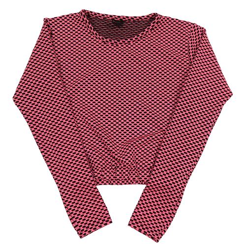 Neónově ružovo-čierne vzorované crop tričko