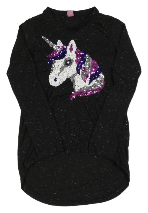 Čierne melírované dlhé tričko s jednorožcem z flitrů Y.F.K.