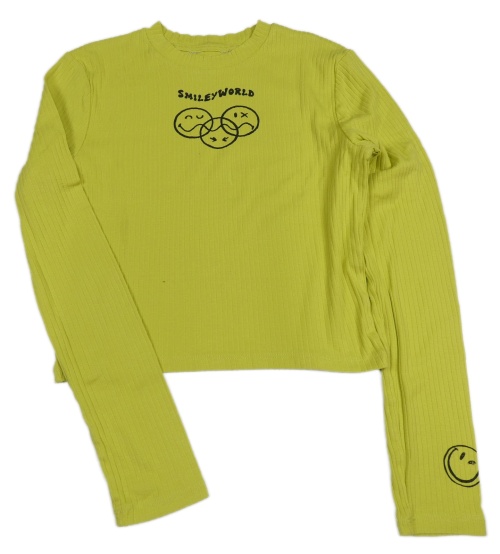 Zelené rebrované crop tričko so smajlíkmi