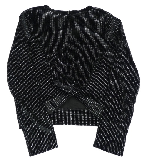 Čierno-strieborné zamatové trblietavé crop tričko
