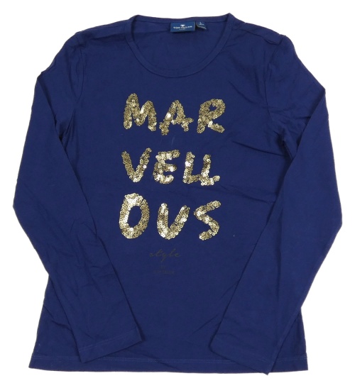Tmavomodré tričko s nápisem z flitrů Tom Tailor