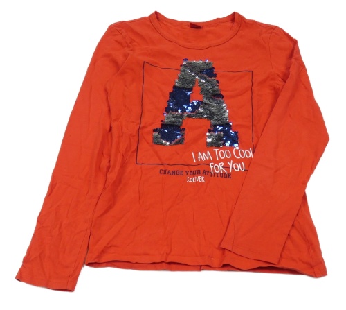 Červené tričko s písmenkem z překlápěcích flitrů S. Oliver