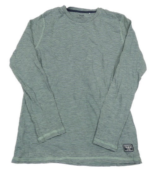 Zelenošedo-tmavomodré pruhované tričko s nášivkou YIGGA