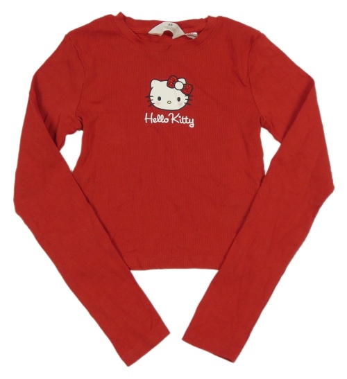Červené rebrované crop tričko s Hello Kitty H&M