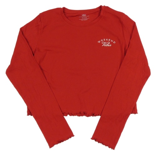 Červené rebrované crop tričko s nápisom M&S vel.176
