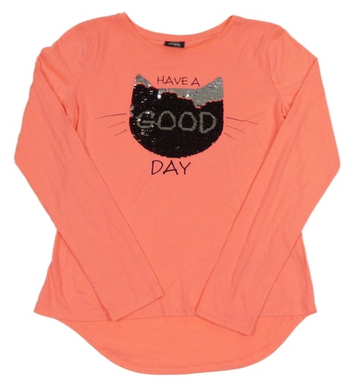 Neónově ružové tričko s kočkou z flitrů Page one young vel.176