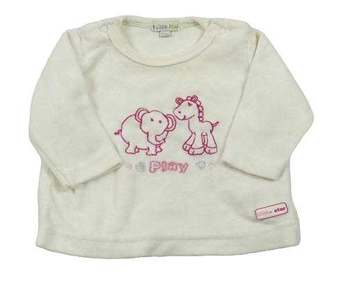 Smotanové zamatové tričko so slonom a žirafou