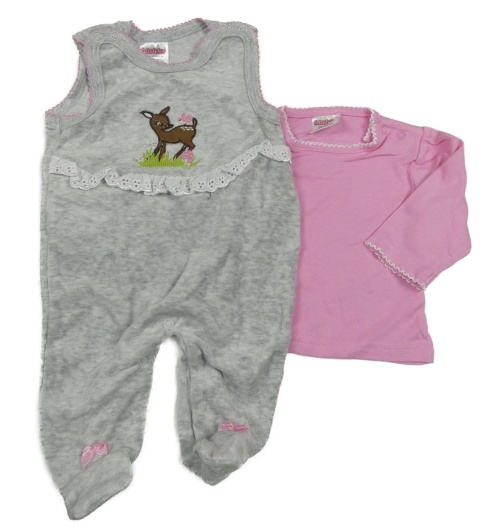 2 set - šedé sametové dupačky s kolouškem + ružové tričko