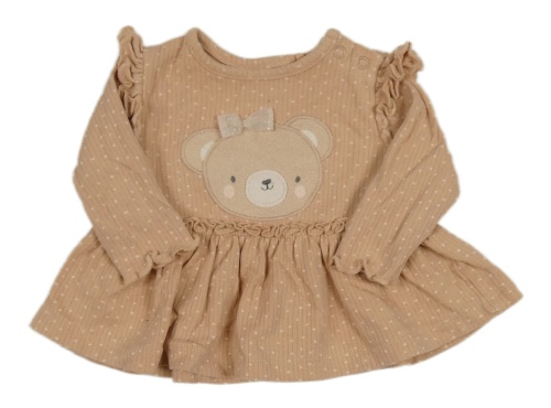 Broskvová rebrovaná tunika s medvedíkom a bodkami